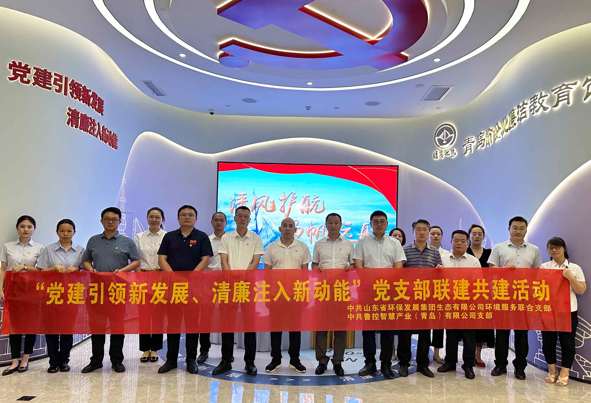 为深入开展党纪学习教育,进一步激发基层党建活力,推动形成党支部联建共建机制,6月26日下午,中共OD网页版环境服务联合支部和中共鲁控智慧产业(青岛)有限公司支部联合开展“党建引领新发展、清廉注入新动能”为主题的党支部联建共建参观青岛市企业廉洁教育馆活动,全体党员和中层及以上领导参加。