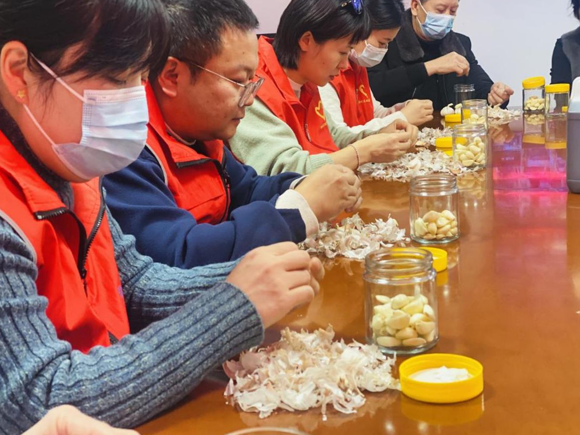 活动现场,志愿者与居民围坐一起,纷纷动手泡腊八蒜,大家一边交流着各家的腌制窍门,一边将寓意吉祥的蒜瓣浸入香醋。旁边,熬腊八粥的大锅热气腾腾,志愿者们协同居民将各类精选食材细心下锅,慢慢熬煮,一时间,蒜香与粥香交织弥漫,勾勒出浓厚的节日氛围。随后,志愿者们将精心熬制的腊八粥、泡制的腊八蒜封装妥当,逐户送到社区孤寡老人与困难家庭手中,让他们真切感受到了关怀与节日的温馨。
