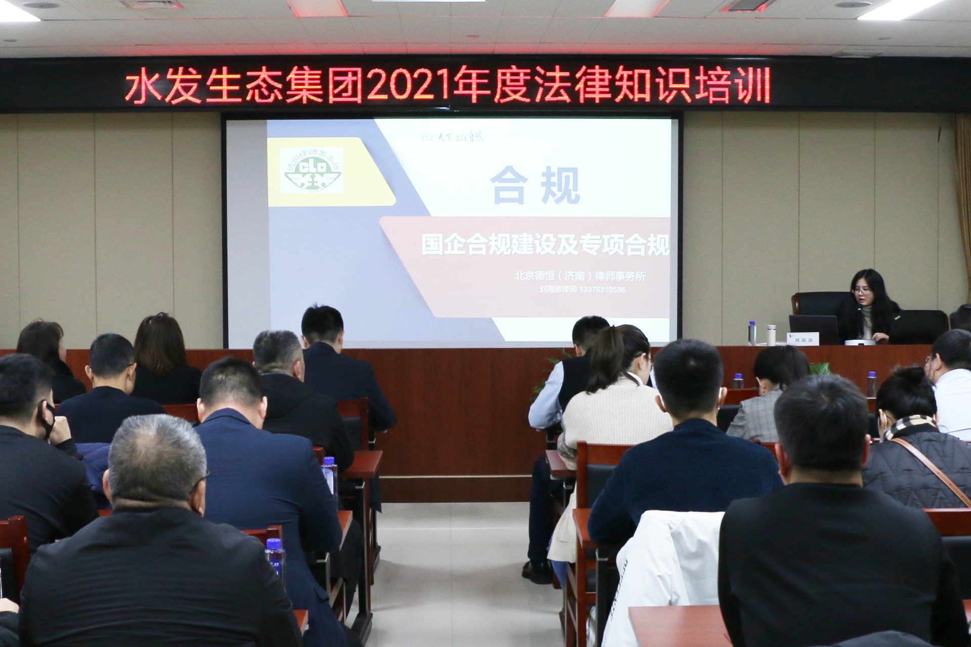 为进一步深入学习习近平法治思想,落实省国资委及水发集团关于法治宣传教育的相关要求,提高提升各公司和各部门的法治意识、合规意识、风险意识,12月8日,水发生态集团开展了2021年度法律知识培训。各权属公司法务、合规工作者共30余人参加本次培训,集团副总经理刘济民出席培训并讲话。