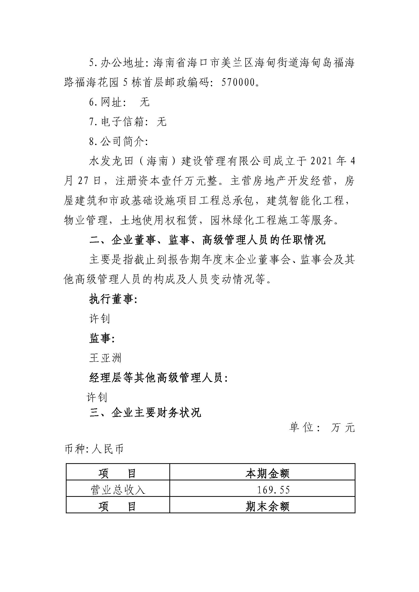 水发龙田(海南)建设管理有限公司 2023年度重大信息公告