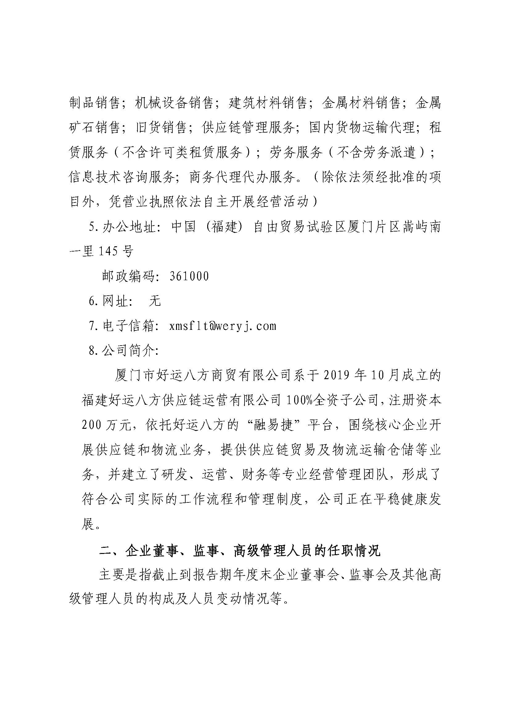 厦门市好运八方商贸有限公司2023年度重大信息公告