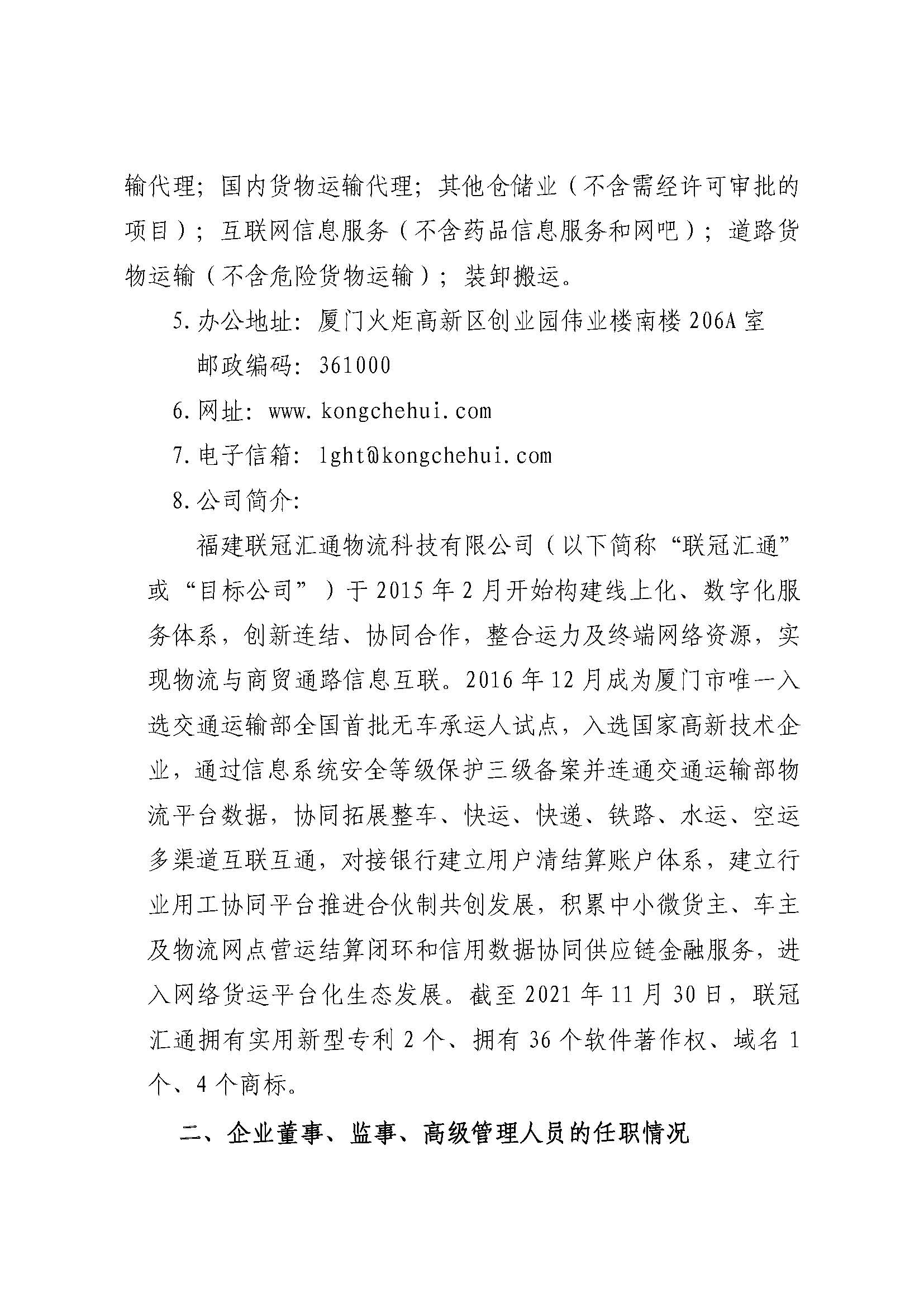 福建联冠汇通物流科技有限公司2023年度重大信息公告