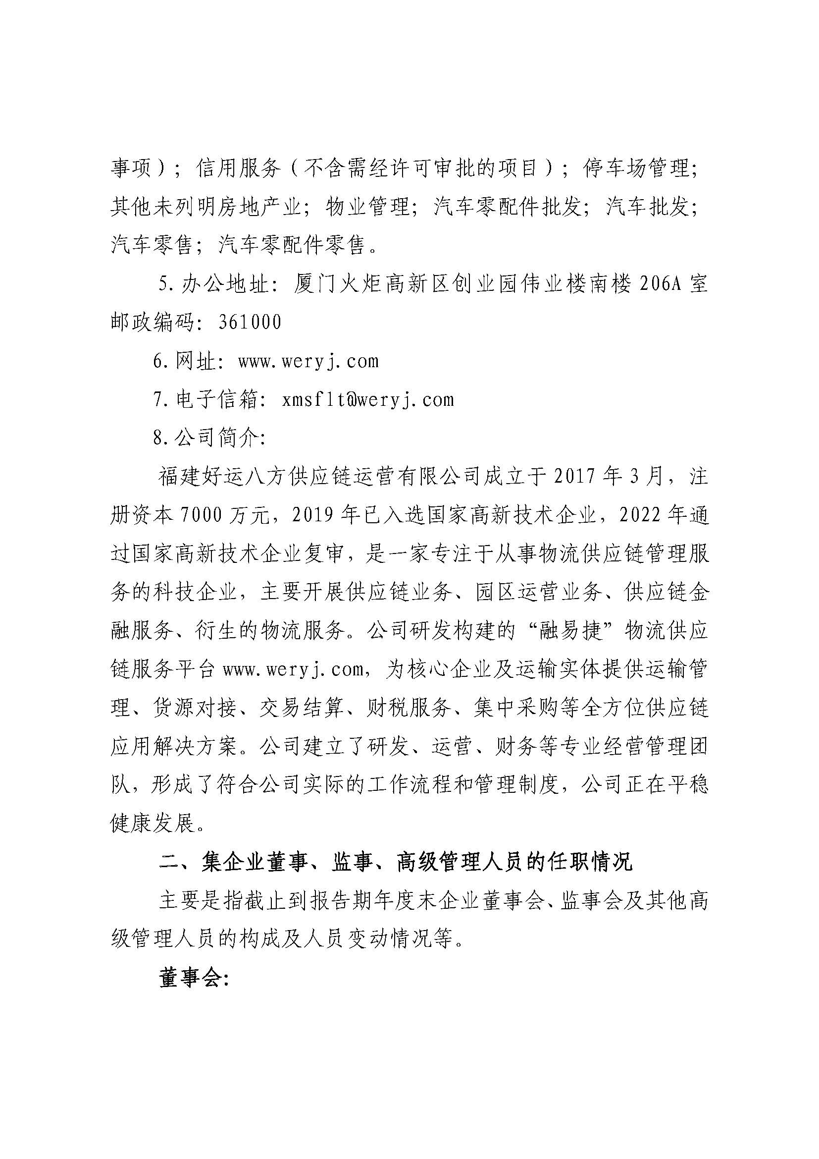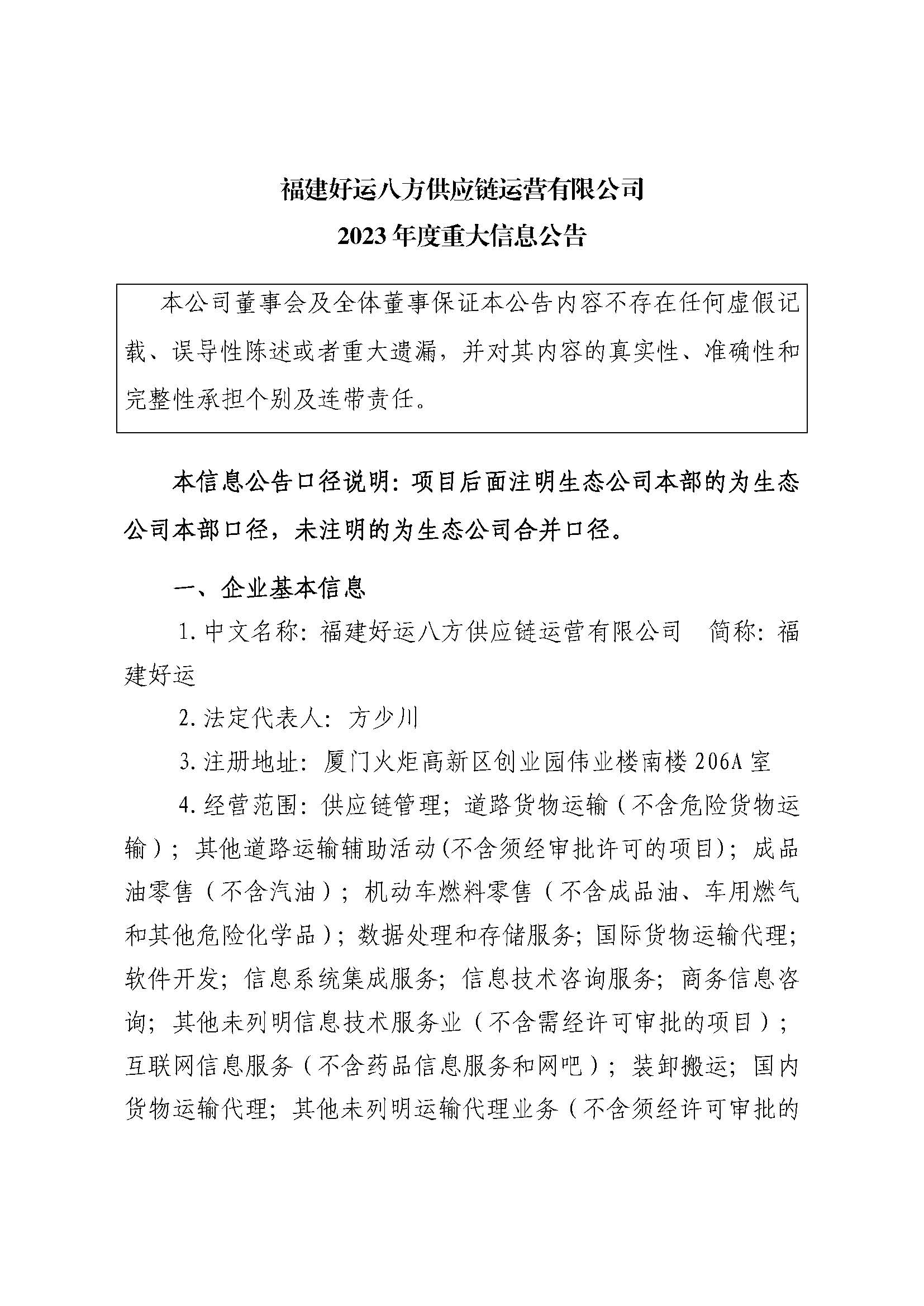 福建好运八方供应链运营有限公司2023年度重大信息公告