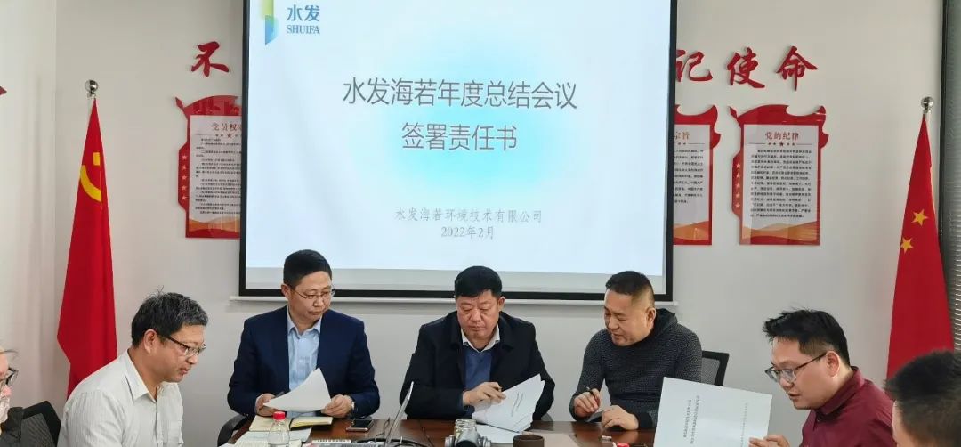 近日,水发海若环境技术有限公司召开2021年度工作总结会议,公司党支部书记、董事长出席会议并讲话,总经理作公司2021年度工作报告,会议由常务副总经理主持。按照疫情防控相关要求,本次会议以视频形式召开,青岛设主会场,上海、西安、石家庄、莱芜、孝义等地设分会场。