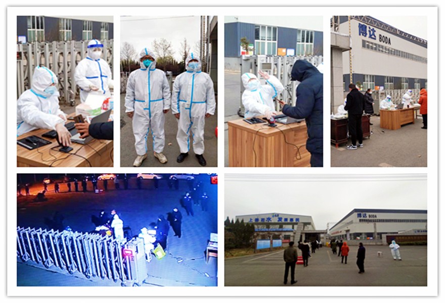 3月9日,淄博博达启动疫情应急预案,严格执行登记、测温及核酸检测等措施,对办公区域、生产车间等重点部位做好每日消毒和通风工作。3月13日起,公司全员执行人员静止、居家静止、原地静止、原岗位静止。同时,公司财务部刘冰因疫情被隔离在周村家中,身为党员的他主动请缨,积极参与到社区志愿服务工作中;生产部肖勇、综合部荆宝家与李丙田,因疫情被隔离在公司,在封闭期间,根据当地政府部署要求,在博达公司设置核酸检测点,三名驻厂员工积极响应政府号召,先后4次投身核酸检测志愿工作中,为周边800余名居民和驻厂员工提供安全保障与服务。