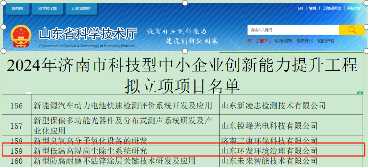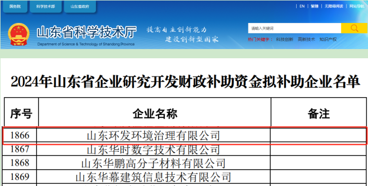 近日,山东省科学技术厅公布了2024年省科技型中小企业创新能力提升工程拟立项项目名单暨2024年山东省企业研究开发财政补助资金拟补助企业名单,山东环发环境治理有限公司榜上有名。认定现已公示完毕,立项金额600万元,奖补金额预计40至70万元。